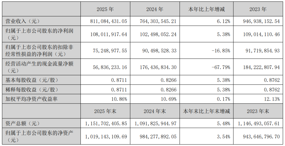 2025年,熊猫乳品实现营业收入8.11亿元,同比增长6.12%;归属于上市公司股东的净利润1.08亿元,同比增长5.38%。